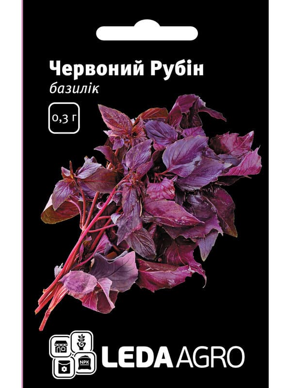 Компактний (росте до 45 см) сорт фіолетового базиліку з надзвичайними смаковими й декоративними властивостями. Покращена варіація сорту Темний опал. Гладеньке темно-пурпурне з відблиском листя, багате ефірними маслами, має приємний аромат і насичений солодкуватий смак, який найкраще ароматизує салати, гарніри й консервацію. Цвіте гарними рожевими квітками, добре прикрасить і городню грядку, й квіткову клумбу. Ідеально підходить для вирощування в горщиках.