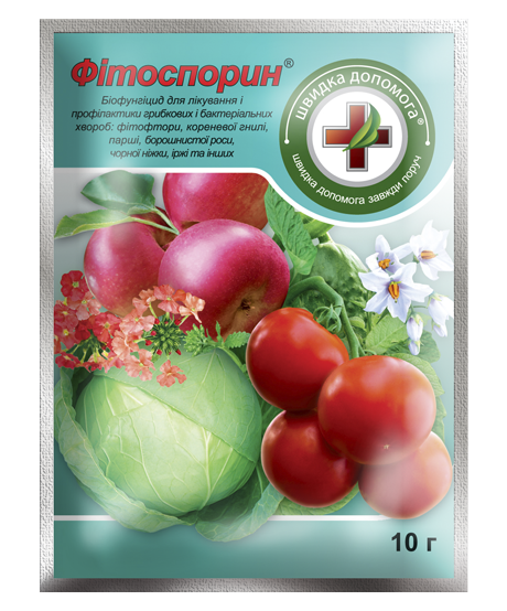 Фітоспорин® – біофунгіцид для лікування і профілактики грибкових та бактеріальних хвороб. Попереджує і знищує фітофтору, кореневі гнилі, паршу, борошнисту росу, чорну ніжку, іржу та ін. Представляє собою препарат на основі Bacillus sudtilis («сінна паличка») – бактерій, які входять в конкуренцію із більшістю грибкових та бактеріальних захворювань, та пригнічує їх розвиток. Побічна складова Фітоспорин® – гумат калію, здійснює функцію стимулятора росту, який посилює ріст і активує фізіологічні та обмінні процеси рослини.