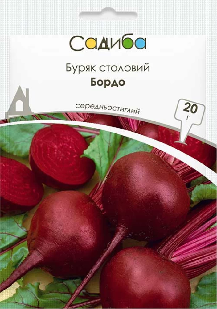 Буряк Бордо – середньостиглий (110-115 діб), популярний, добре відомий, перевірений часом сорт буряку з округлою формою коренеплоду. Плід середньою вагою 150-500 г, насиченого яскраво-бордового забарвлення з незначними волокнистими світлими прожилками, з соковитим, щільним і солодким м’якушем. Коренеплоди формуються різного розміру, схильні до переростання, під час дозрівання накопичують значну кількість цукру й вітамінів. Демонструє високий показник стійкості до грибкових захворювань. Сорт гарно зберігається, його споживають у свіжому, тушкованому, запеченому й вареному вигляді.Має незначні волокнисті світлі прожилки