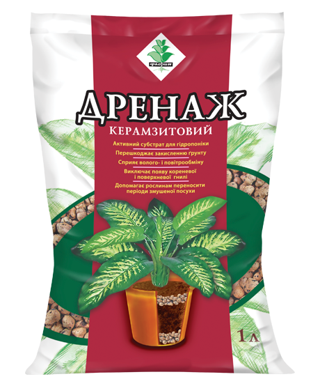 Дренаж керамзитовий – допоміжний компонент для висадки рослин у ємності. Являє собою невелику фракцію керамзиту. Він насипається на дно для стікання зайвої води і запобігання її застоювання в ємності.