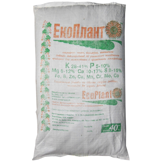 Склад добрива: фосфор (Р) 3-6%; калій (К) 25-31%; магній (Мg) 7-11%; кальцій (Са) 9-16%; сірка (S) 6-9%; залізо (Fe); бор (В); цинк (Zn); мідь (Cu); марганець (Mn); хром (Cr); молібден (Mo); кобальт (Co). Загальний вміст елементів живлення становить не менше 70%.
