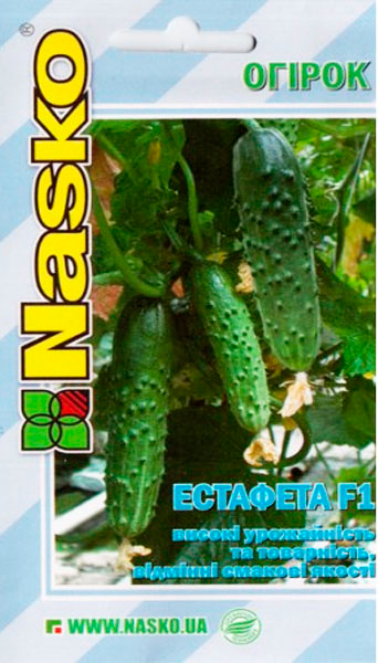 Естафета F1 – Середньостиглий, бджолозапильний гібрид, салатного призначення для закритого (зимових і весняних теплиць) і відкритого грунту. Період від повних всходів до початку плодоношення 53-69 днів.
