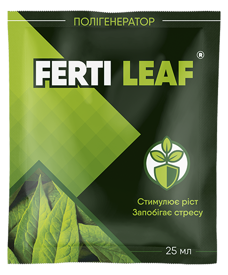 Ferti Leaf® – регулятор росту, який призначений для стимуляції росту та розвитку вегетативної системи (листя, стебла). Він активізує обмін речовин, їх транспорт в рослині, стимулює поділ клітин, прискорюють утворення нових пагонів, стимулює дихання, фотосинтез та енергетичний обмін. Застосовується для пришвидшення формування вегетативної системи та виведення рослини із стресових станів після несприятливих явищ. Склад препарату сформований таким чином, щоб спрямувати розвиток рослини, в першу чергу, на формування вегетативної системи.