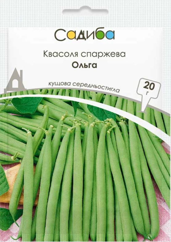 Квасоля Ольга – середньостиглий (до 80 днів) сорт із ніжно-зеленими бобами для вирощування у відкритому ґрунті. На компактному невисокому (40-50 см) кущі формуються довгі, соковиті боби 13-14 см у довжину й діаметром 8-10 мм без пергаментної оболонки та білими квасолинами всередині. Врожайність стручків від 2,0 до 2,5 кг/м². Сорт невибагливий до умов вирощування, відносно стійкий до ураження хворобами (антракноз, вірус жовтої мозаїки), довго плодоносить (до 90 днів). Збирають квасолю на стадії молочної стиглості для споживання в свіжому вигляді й гарячих стравах, консервування, заморозки, зберігаючи при цьому комплекс корисних речовин. Сорт Ольга входить у перелік кращих сортів спаржевої квасолі, яка приємно урізноманітнює повсякденне меню.