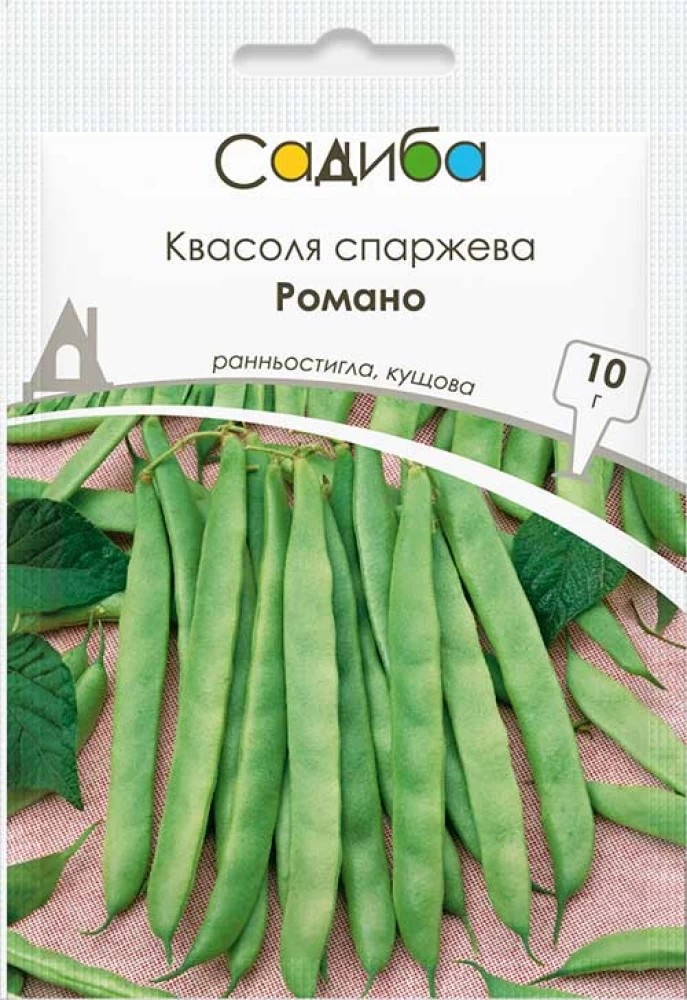 Квасоля Романо – ранньостиглий (60-70 днів) продуктивний сорт кущової спаржевої квасолі для вирощування у відкритому ґрунті. На міцній рослині заввишки 40-50 см, формуються злегка вигнуті стручкі, пласкі в перерізі, довжиною до 16 см, світло-зеленого кольору з ніжною текстурою, без жорстких волокон, з маленькими білими маслянистими насінинами всередині (маса 1000 шт.- 420 г ). Сорт стійкий до збудників вірусних і бактеріальних захворювань квасолі. Характеризується високою врожайністю, приємним смаком, товарним виглядом стручків. Використовують для приготування різноманітних страв і заморозки, підходить для дитячого харчування.