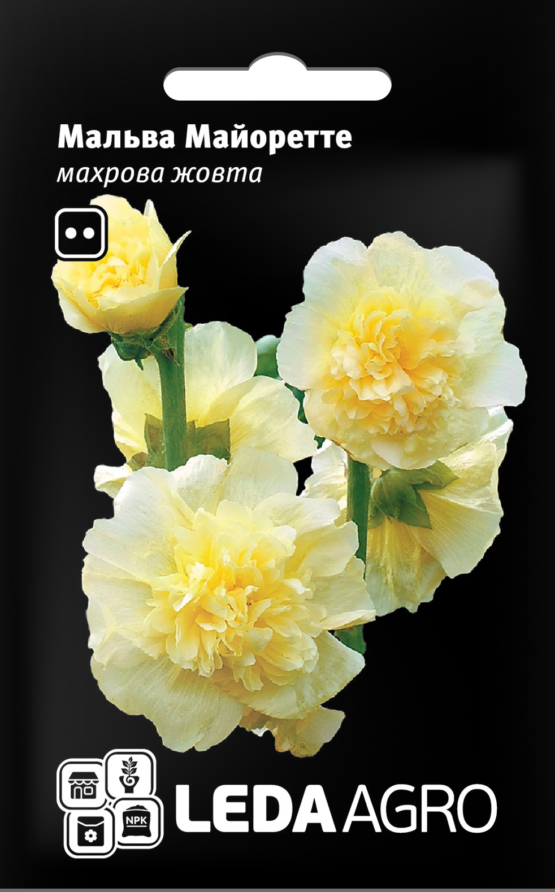 Мальва — популярний сорт квітки. Великі, до 5-8 см в діаметрі махрові квіти яскравого забарвлення. Привабливі подвійні квіти виглядають зовсім невисокими. Стебла висотою до 150 см. Добре росте на відкритих сонячних ділянках з поживним ґрунтом. Використовується групами для декорування огорож, стін, переважно для групових посадок, клумб та на зріз.