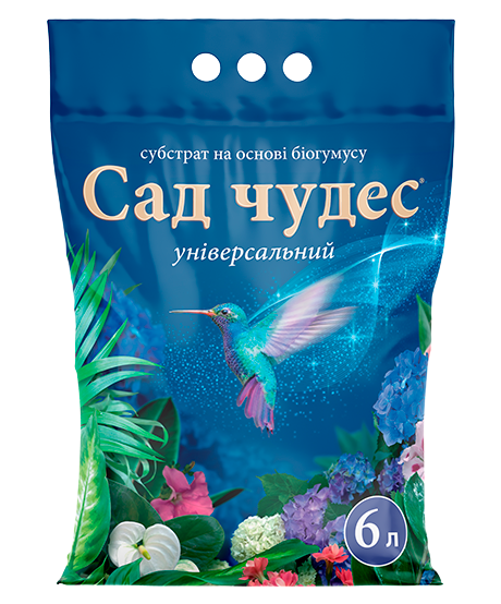 Сад Чудес® – поживний субстрат на основі біогумусу, суміші перехідного та низинного торфів з додаванням агроперліту, річкового піску, макро- та мікродобрив. Біогумус – продукт переробки органічних рослинних решток каліфорнійськими червами. Він забезпечує мікробіологічну активність ґрунту, містить фітогормони та інші біологічно-активні сполуки. Забезпечує активізацію розвитку рослин, посилення росту та цвітіння.