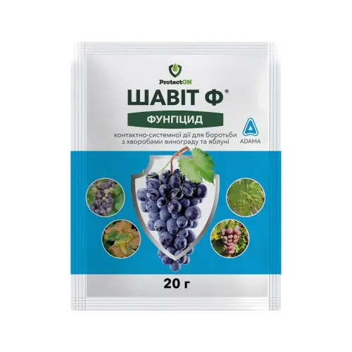 Системно-контактний фунгіцид Шавіт Ф застосовується для профілактики грибкових захворювань, а також як ефективний лікувальний засіб на початковій стадії інфікування. Завдяки поєднанню двох діючих речовин, препарат Шавіт Ф призводить до різних функціональних порушень життєдіяльності фітопатогенів. Фолпет відноситься до хімічного класу фталімідів, перешкоджає розподілу клітин збудника, блокує його поширення рослиною. Друга речовина – тріадименол – класу тріазолів, порушує мембранні функції паразитичних грибів, що веде до руйнування їх клітин. Взаємодія компонентів фунгіциду Шавіт Ф забезпечує надійну профілактику різних мікозів у культурних рослин, забезпечує тривалий період захисту та унеможливлює резистентність до препарату.
