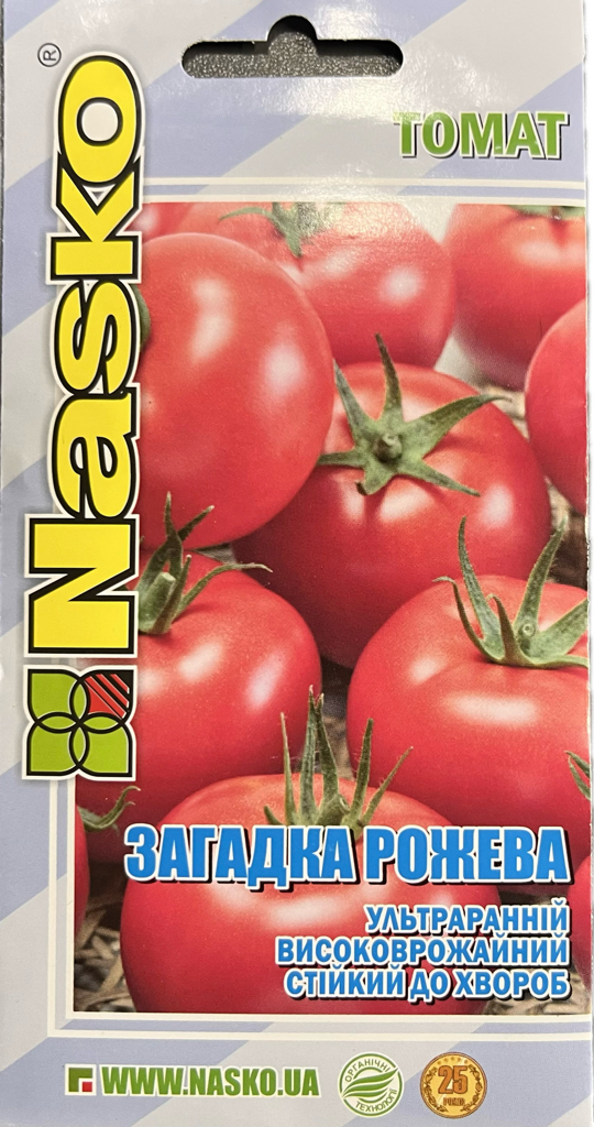 Ультраранній сорт для плівкових теплиць та відкритого грунту (від сходів до достигання – 80-85 днів). Рослина детермінантна, компактна,заввишки 1-1.5 cM 60-70 см. Плоди округлі, вирівняні і блискучі, яскраво-рожевого кольору. Мʼякоть має чудовий солодкуватий смак та гарний аромат. Сорт характеризується ранньостиглістю, високою урожайністю, відмінними смаковими якостями. Стійкий до ВТМ, альтернаріозу, фузаріозного вʼянення та чорної бактеріальної плямистості. Плоди чудово підходять для ринку ранніх овочів, переробки цільноплідного консервування.